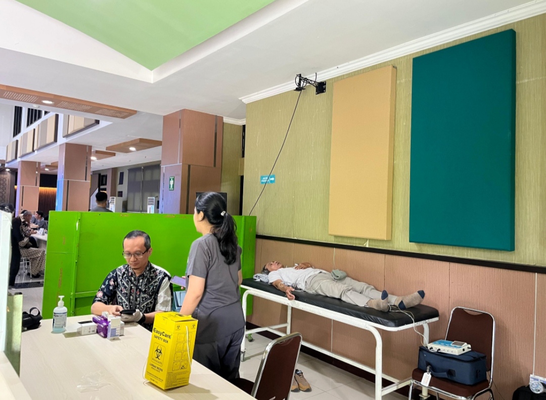 Bagian IKM-KP kembali melaksanakan Posbindu Institusi pada Rabu, 22 Oktober 2025. Kegiatan ini merupakan salah satu kegiatan rutin Bagian IKM-KP yang dilaksanakan setidaknya 3 bulan sekali dan menjadi salah satu langkah pengabdian dari bagian tridharma perguruan tinggi. Posbindu ini dilaksanakan di Auditorium FK UNS. Kali ini, selain skrining PTM, Bagian IKM-KP juga berkolaborasi dengan dokter spesialis yang juga dosen FK UNS untuk memberikan pelayanan tambahan, tetapi dengan kuota terbatas.